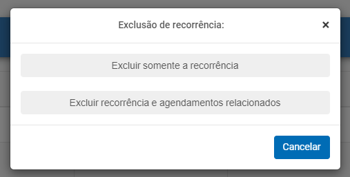 Exclusão: ao excluir uma recorrência você pode escolher excluir também os lançamentos já criados em aberto ou somente a recorrência para que os lançamentos não sejam mais criados.